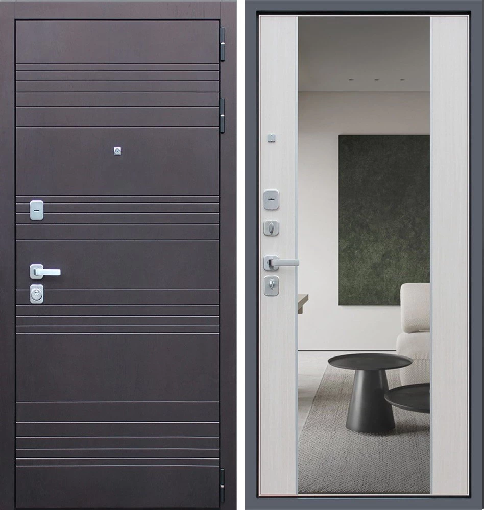 Надежная входная Дверь Дуэт с зеркалом премиум класса по цене 47 753 руб. Большая толщина стали защитит от проникновения в ваш дом, квартиру или коттедж. Используется очень качественная фурнитура: замки, цилиндры, ручки, защелки. Покрытие и отделка двери изготовлено под внимательным контролем производителя. Дверь имеет долгий срок службы и гарантию.