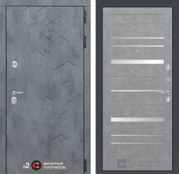 Дизайнерская входная Дверь Бетон класса Люкс с несколькими листами стали, звукоизоляцией и теплоизоляцией. Утепленный короб и полотно защитят от сквозняков и шумов. Модель не только надежная, комфортная, защищенная и высочайшего качества, но и очень красивая! Будет отлично сочетаться с интерьером дома, квартиры или офиса. Сейчас действует выгодное предложение по цене: 56 203 руб.